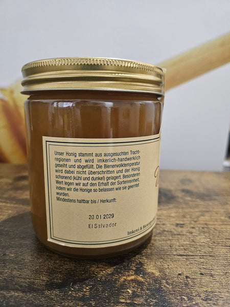What makes this honey special compared to European honeys is that El Salvador lies close to the equator and enjoys a consistently warm climate year-round. These are ideal living conditions for the heat-loving bees, meaning that supplemental feeding with sugar ( winter feeding ) is completely unnecessary.