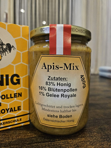 APIS Honig mit Blütenpollen und Gelee Royale kommt direkt vom Steirischen Imkerzentrum – sorgfältig hergestellt und voller wertvoller Inhaltsstoffe.